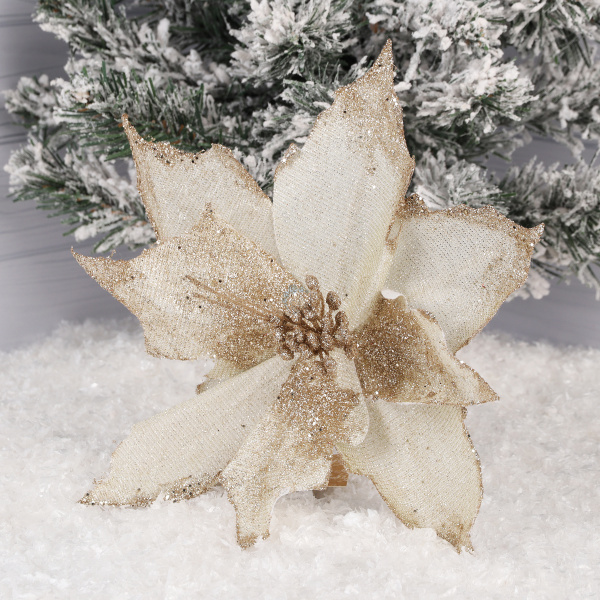 Украшение Цветок 27см текстиль ЛЬДИНКА 212612 белый/золото