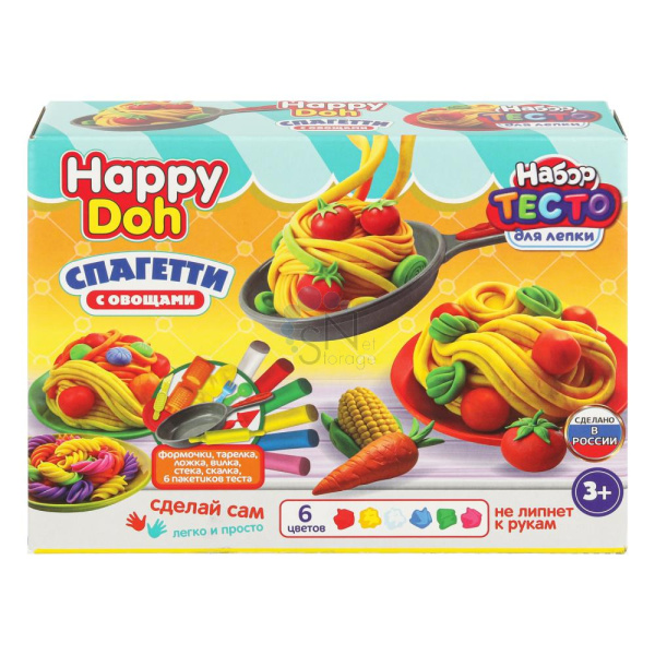 товары для офиса и школы Тесто для лепки 6 цветов по 50гр Happy Doh Спагетти 6 деталей PDSET-125602-MAC/398686