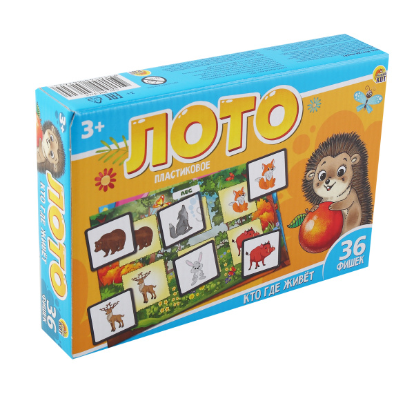 Игра настольная Лото 36шт Рыжий кот Кто где живет фишки пластиковые ИН-4262
