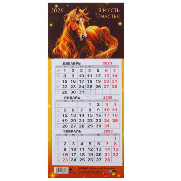 Календарь магнитный 2026г 108*245 Квадра Мини-трио Символ года 9371